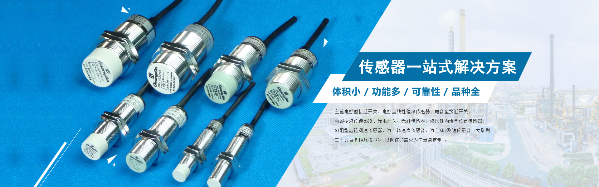溫州市洞頭傳感器廠(chǎng) (原名洞頭縣傳感器廠(chǎng)由于縣改區(qū)而變更)公司三十多年來(lái),積極開(kāi)發(fā)、引進(jìn)、消化國(guó)內(nèi)外的先進(jìn)技術(shù) 和工藝,成功地開(kāi)發(fā)了電感型接近開(kāi)關(guān)、電感型線(xiàn)性位移傳感器、電容型接近開(kāi)關(guān)、 電容型液位傳感器、光電開(kāi)關(guān)、光纖傳感器、液壓缸內(nèi)活塞位置傳感器、磁阻型齒輪 測(cè)速傳感器、汽車(chē)轉(zhuǎn)速表傳感器、汽車(chē)ABS測(cè)速傳感器十大系列二千五百多種規(guī)格型號(hào)。