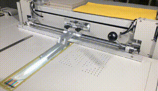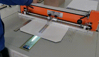 制作臺(tái)歷架演示 在SK840A書殼機(jī)上更換定位擋塊,就可快速批量完成標(biāo)準(zhǔn)臺(tái)歷架的制作。 |