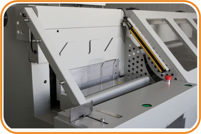 紅外安全裝置 放入書芯后,操作人手部離開檢測區(qū)即可自動運(yùn)行,確保書芯 |