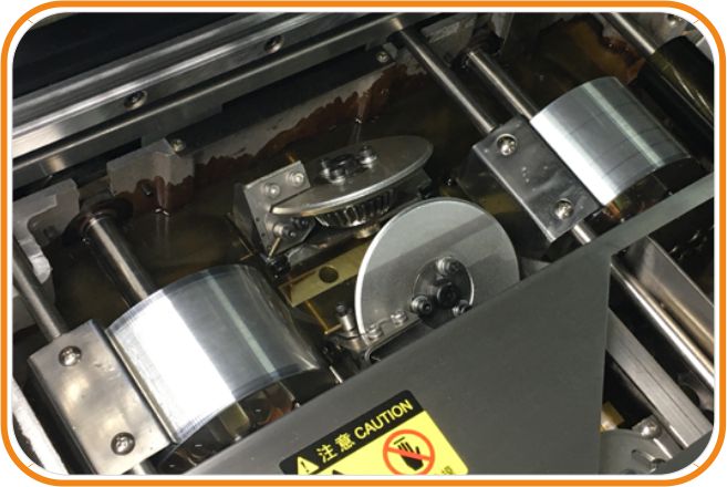 書芯放入夾書器,即可自動檢測書芯厚度,并實(shí)時(shí)完成所有工位的定位調(diào)整,無需人工干預(yù)。操作區(qū)設(shè)有外紅檢測安全裝置。